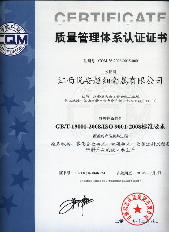 Renewed the Chinese Certificate of GB/T 19001-2008/ISO9001:2008