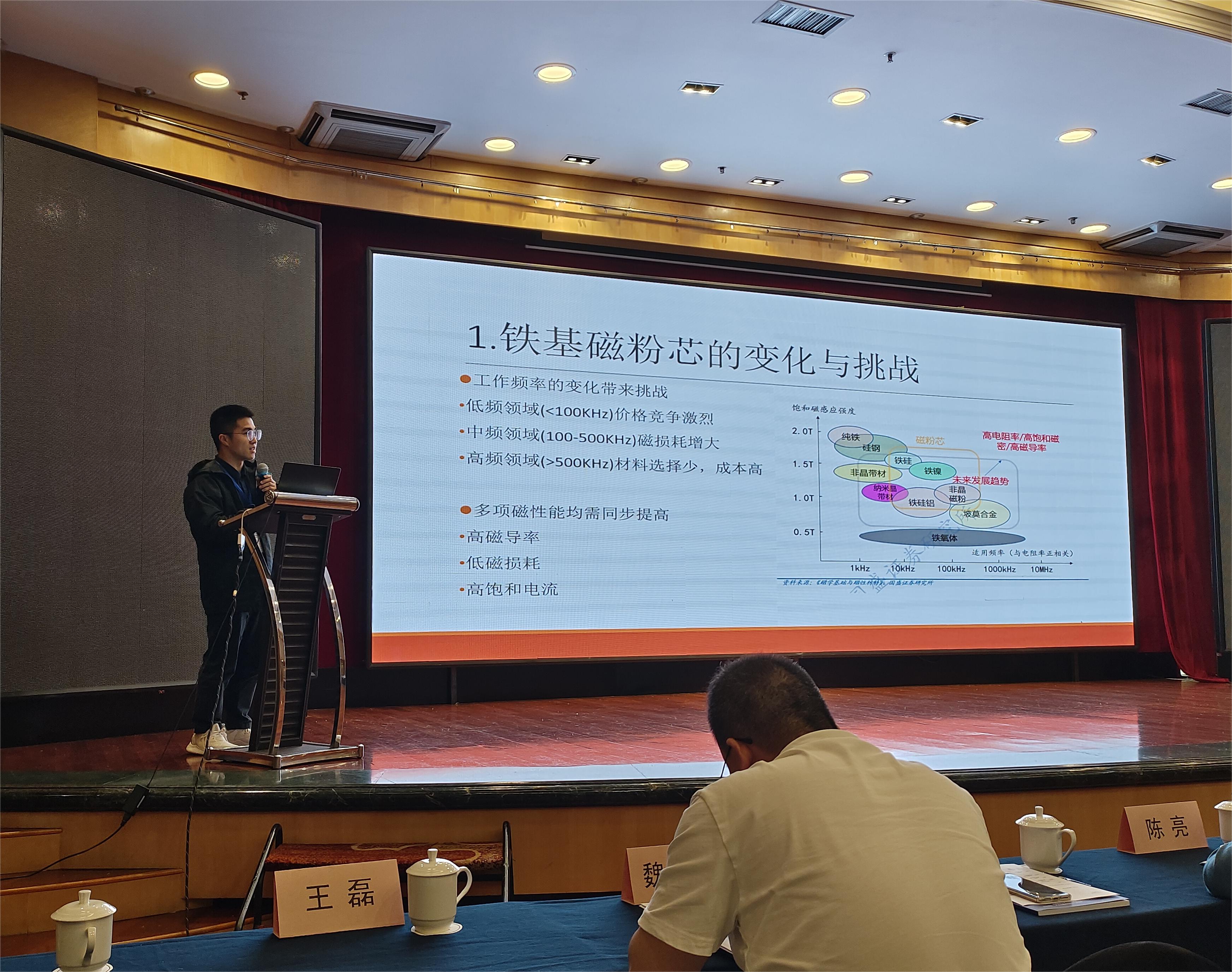 江西省悅安新材料股份有限公司(以下簡稱“悅安新材”)受邀參加本次論壇,悅安新材工程師呂遠斌圍繞“高性能鐵基磁粉芯創新材料體系發展趨勢”作主題報告,并與在座專家同行展開互動交流,分享了彼此的經驗和思考,受到與會代表熱烈歡迎。